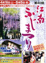 曼陀羅寺公園内では、12種類120本の藤に加え全国各地にある天然記念物の藤も植えられており、 祭りの期間中は甘いかおりに包まれます。 |